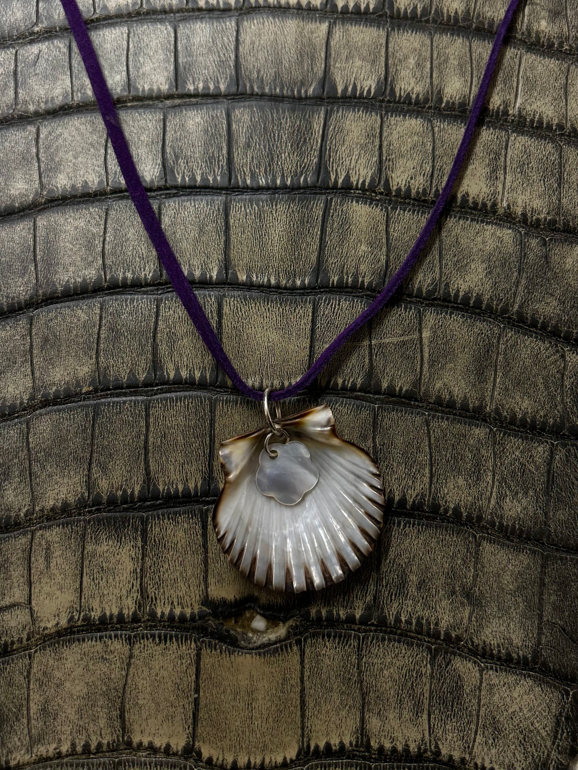 Hand made with purple suede and real shells